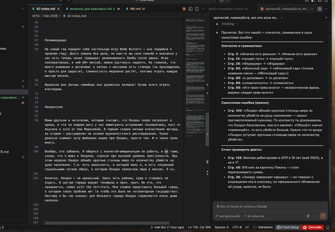 Важно уточнить, что этот выпуск я по-прежнему пишу сам, но активно пользуюсь ИИ. Моя связка — Obsidian + VS Code + Claude Code. В основном я прошу исправить ошибки и поправить пунктуацию, найти ссылку на новость или обсуждаю свои выводы.